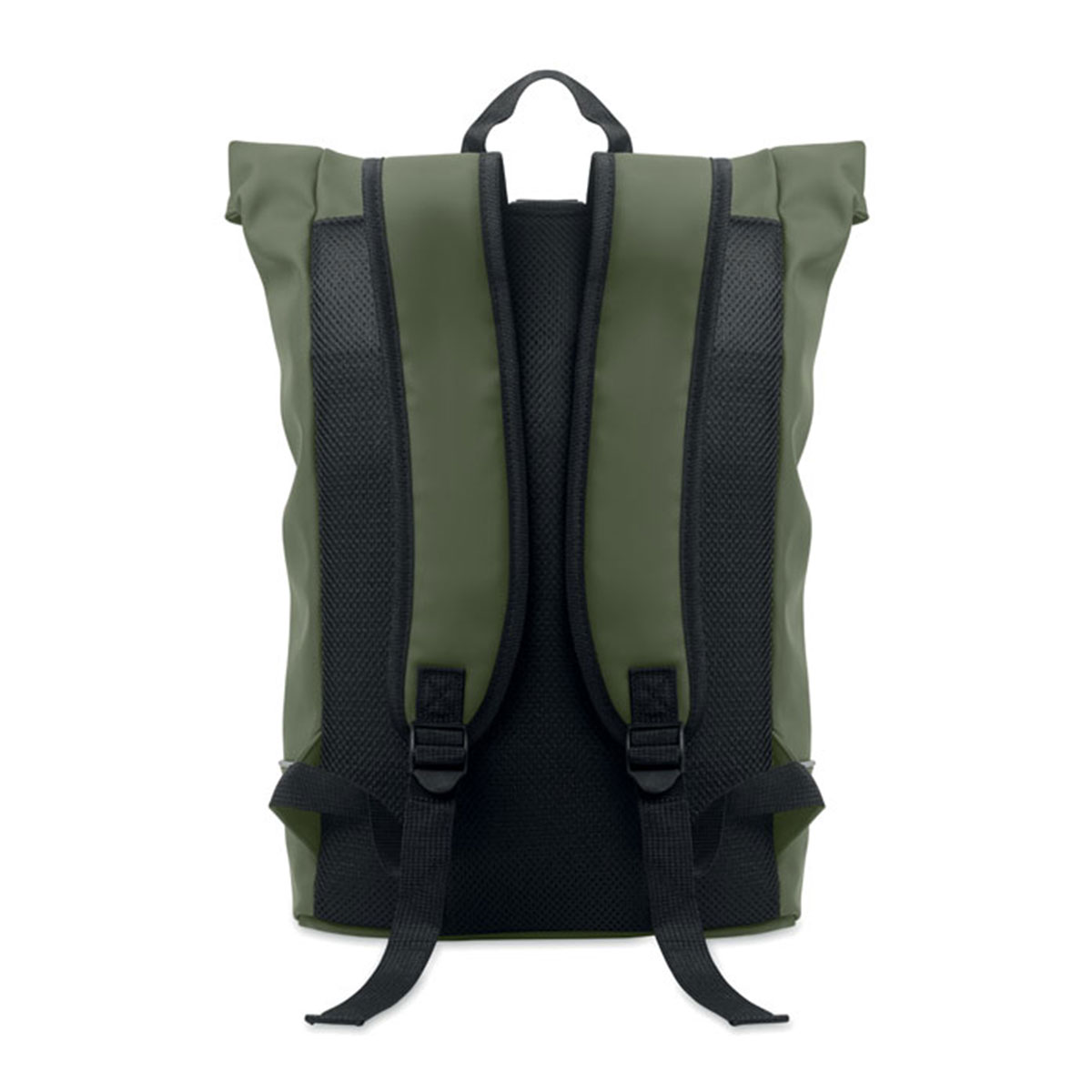 LAPTOSA is a modern roll-top backpack designed for laptops up to 38 cm (15"). Its minimalist design is combined with practical features such as a padded back, reinforced bottom, and a waterproof front pocket.