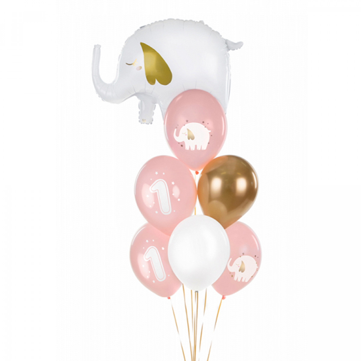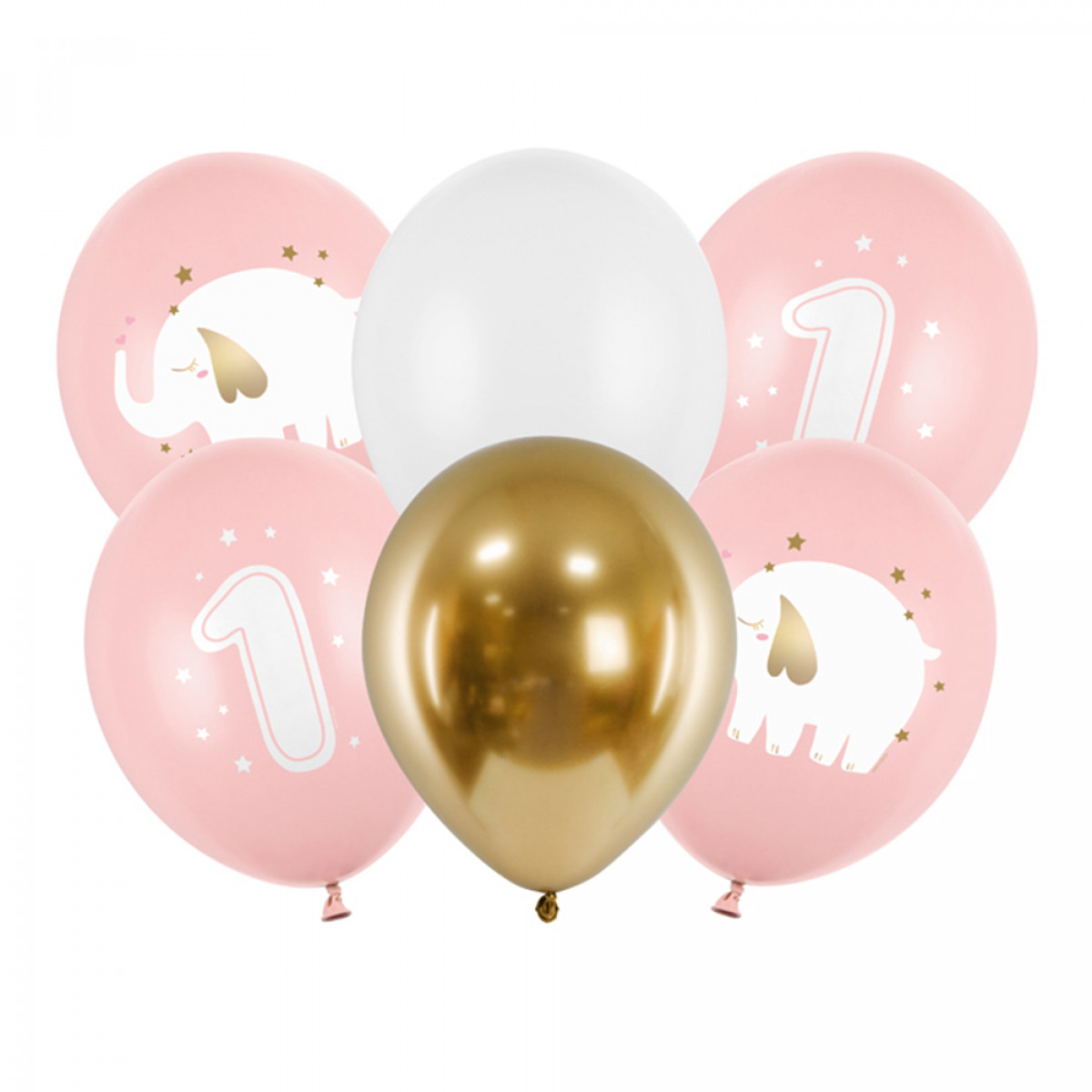 Balloons "One Year", Pastel Pink (6 pcs.)
