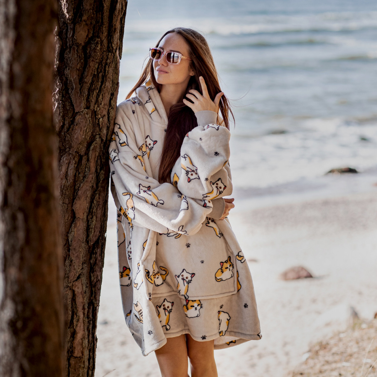 - Multifunctionality. This warm garment will replace both a sweatshirt and a blanket.
