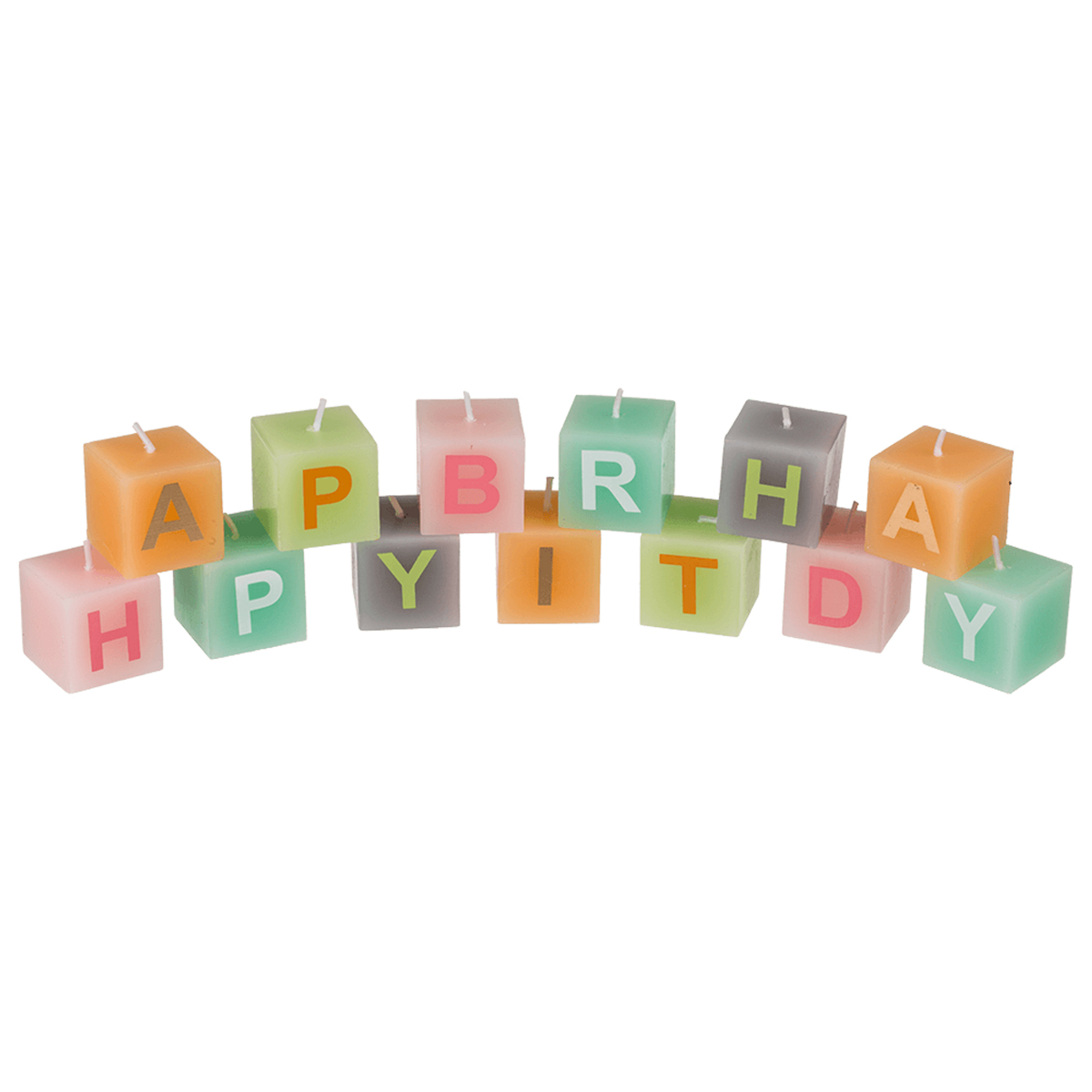 Pastel-colored birthday cake candles - letters "HAPPY BIRTHDAY".