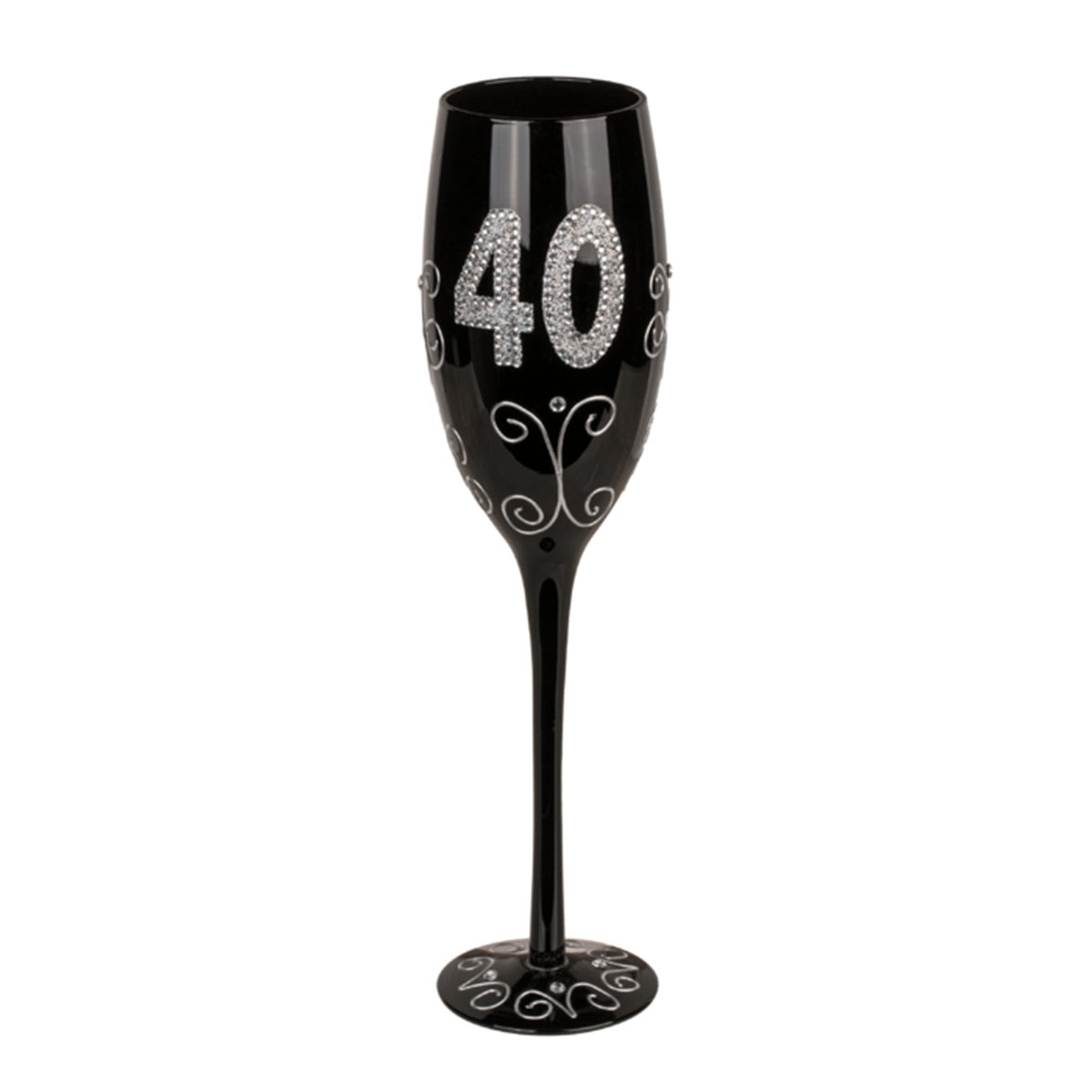 Black champagne glass with number "40"