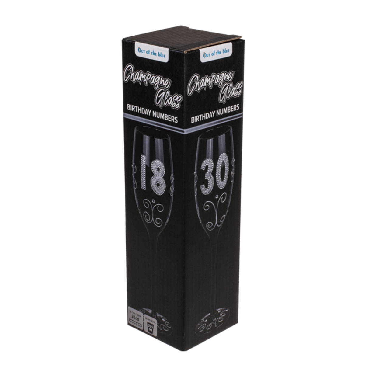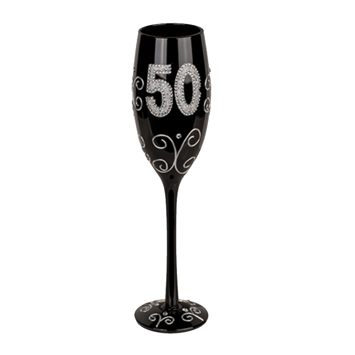 Black champagne glass with number "50"