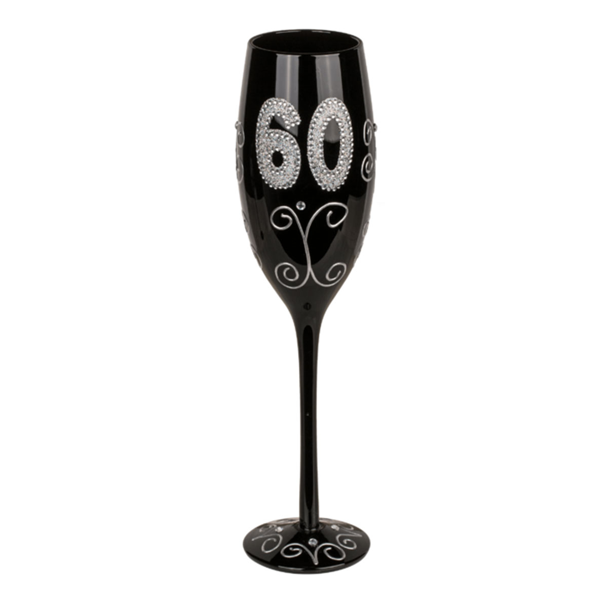 Black champagne glass with number "60"
