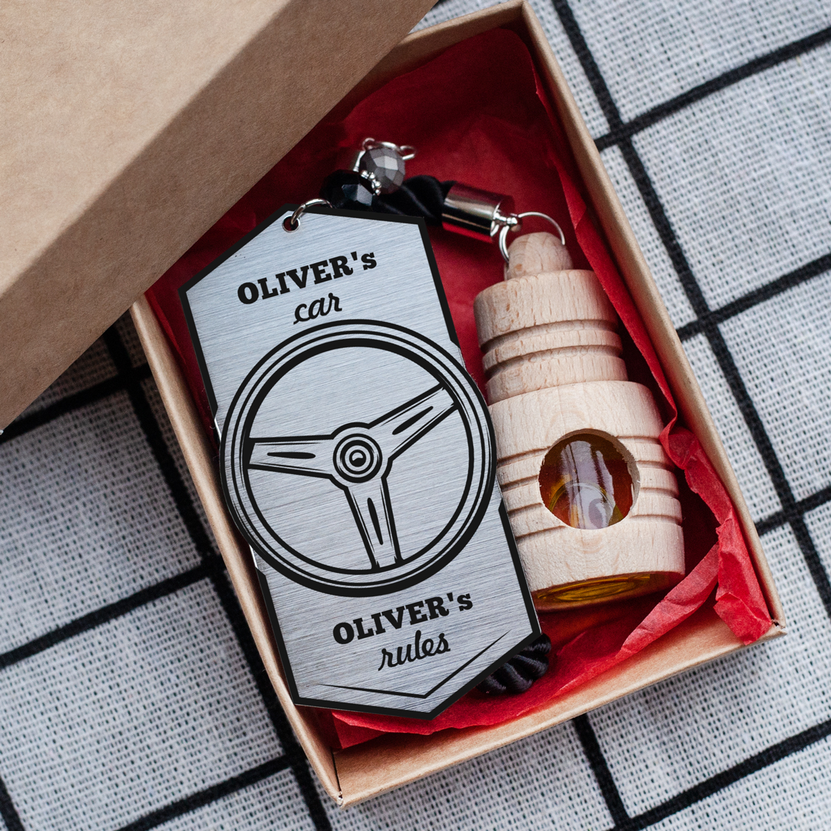 An air freshener with a high-quality engraved inscription not only looks great but also provides a very pleasant, long-lasting fragrance.