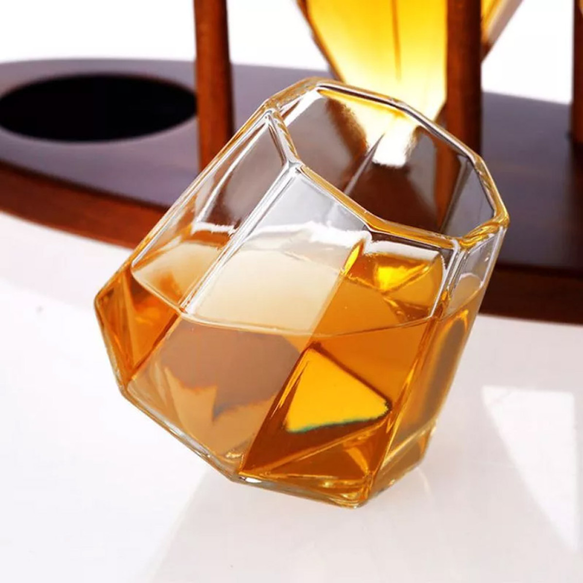 - One glass diamond-shaped decanter (850 ml).