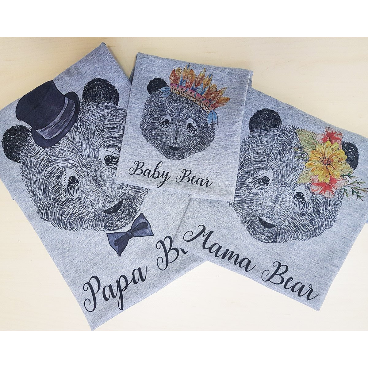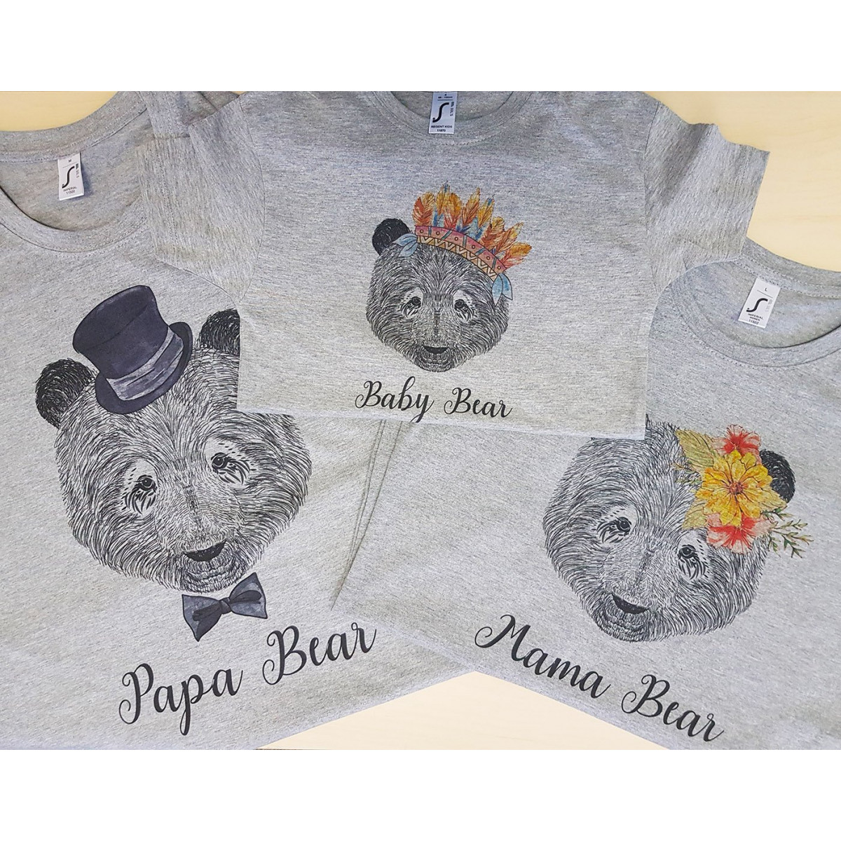 Išskirtinė dovana šauniai šeimai! Marškinėlių komplektas, kurį sudaro 3 marškinėliai: 1 vyriški, 1 moteriški ir 1 vaikiški. Ant marškinėlių priekio pavaizduoti smagūs paveikslėliai su meškinais, kurie suteikia marškinėliams originalumo!