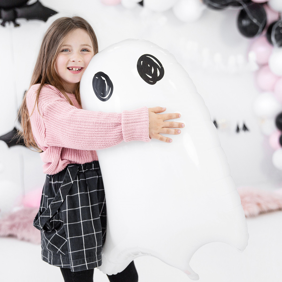 A spectacularly spooky Halloween party decoration - a ghost-shaped foil balloon! A ghost-shaped balloon with black eyes will scare anyone!