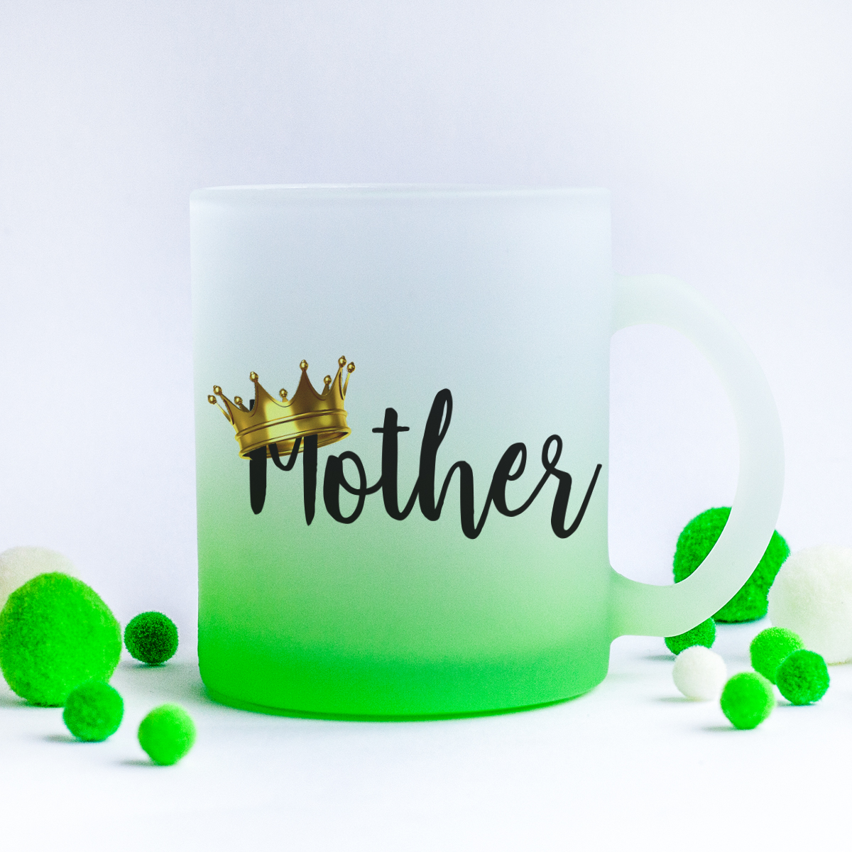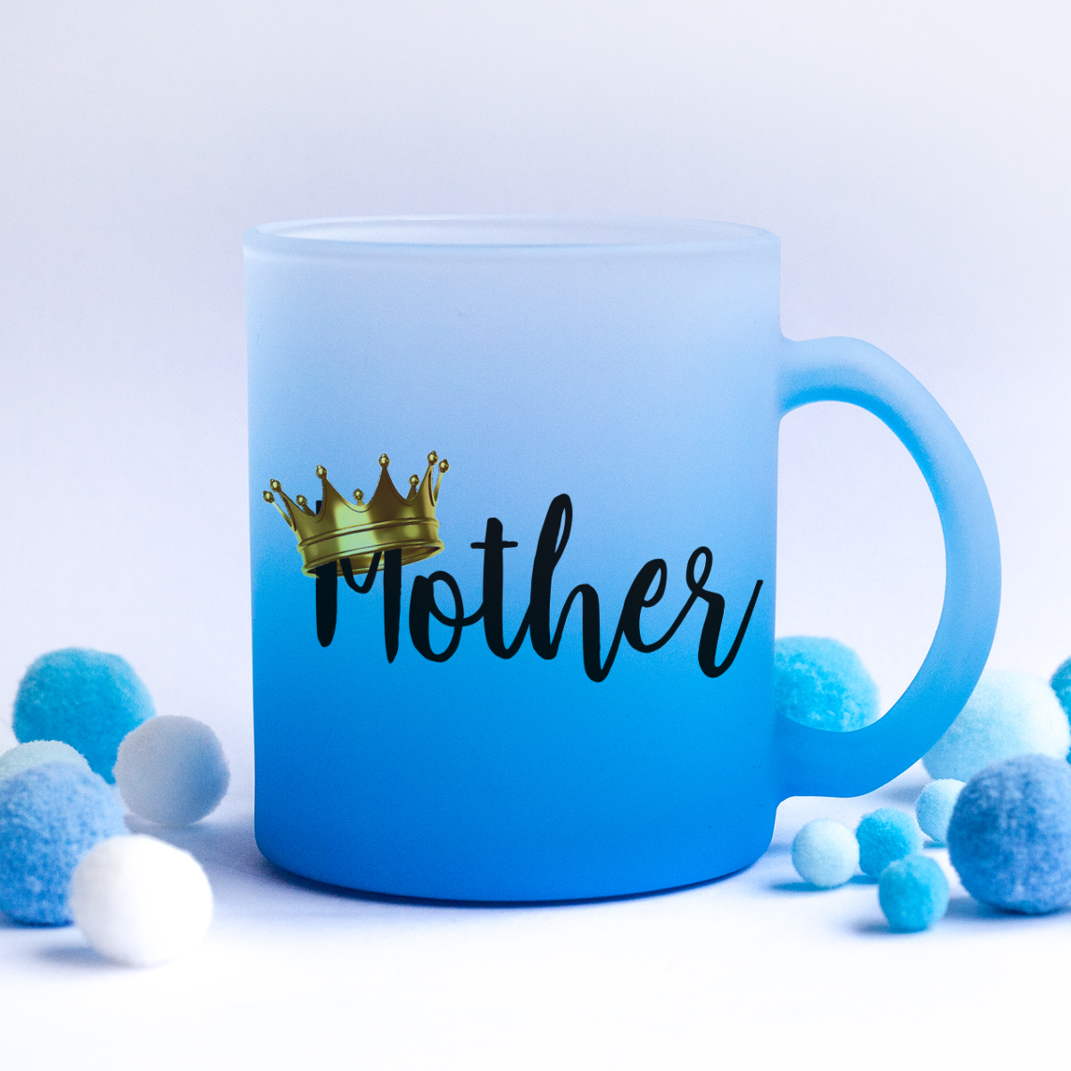 Unique, glass, frosted, gradient color mug with print - a gift that will delight everyone! Morning coffee or tea from the mug will be a great start to the day! This glass mug will definitely find its place both in the office and at home.