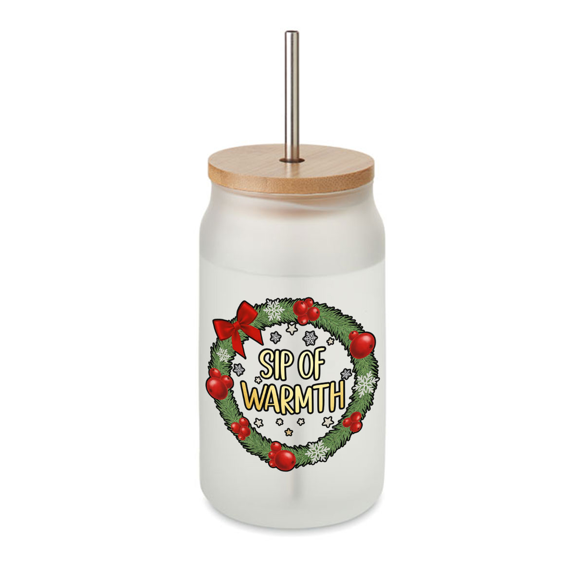 Glass drinking jar with metal straw "Sip of Warmth" - a cozy choice for holidays and everyday moments!