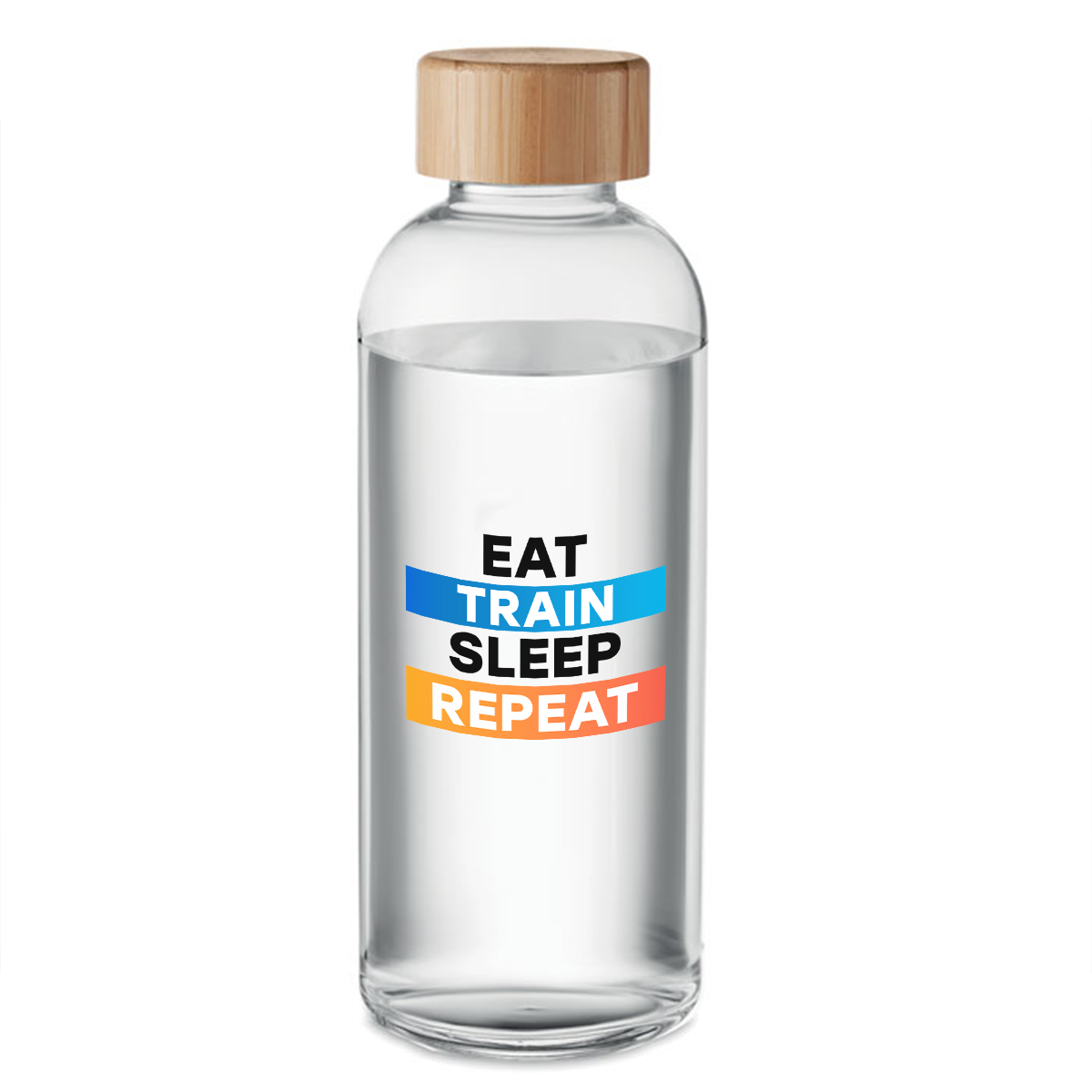 Glass Water Bottle "Eat, Train, Sleep, Repeat" – a convenient and eco-friendly choice for everyday use. Perfect for work, sports, travel, or at home, it’s designed to become your daily companion, while the motivational text adds both uniqueness and positive energy.