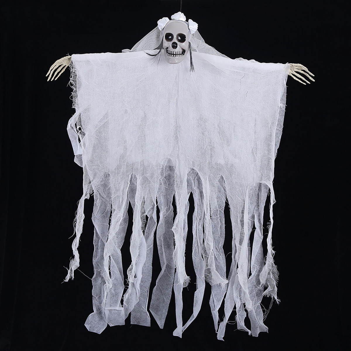 Create a haunting atmosphere with this hanging ghost.