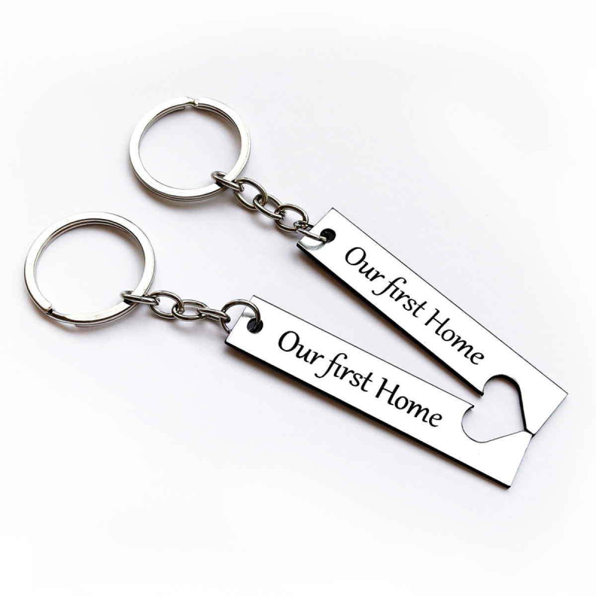 Keychain set with an engraved inscription. Sold packaged in a box as a gift.