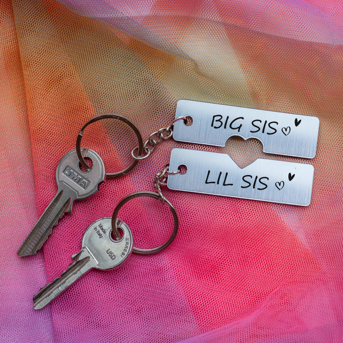 Keychain set with engraved inscription. Sold packed in a box, as a gift.