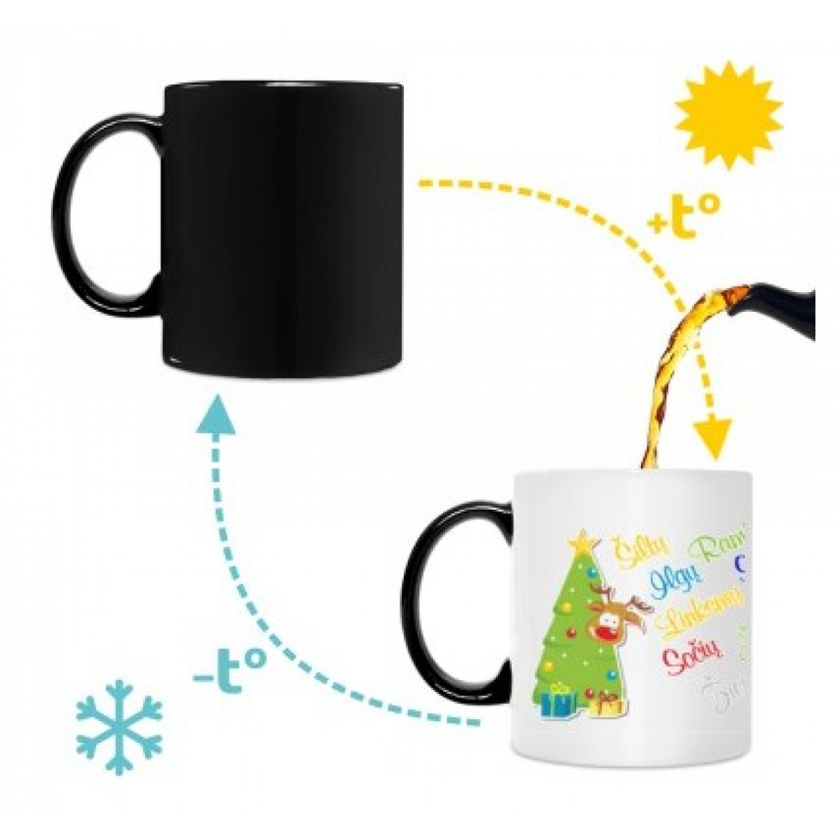 - Magic mug – not called magic for nothing! At first glance, it's a simple black mug, but when hot water is poured in, it turns white, and the hidden print is revealed. It's a real surprise and a little miracle for every day!