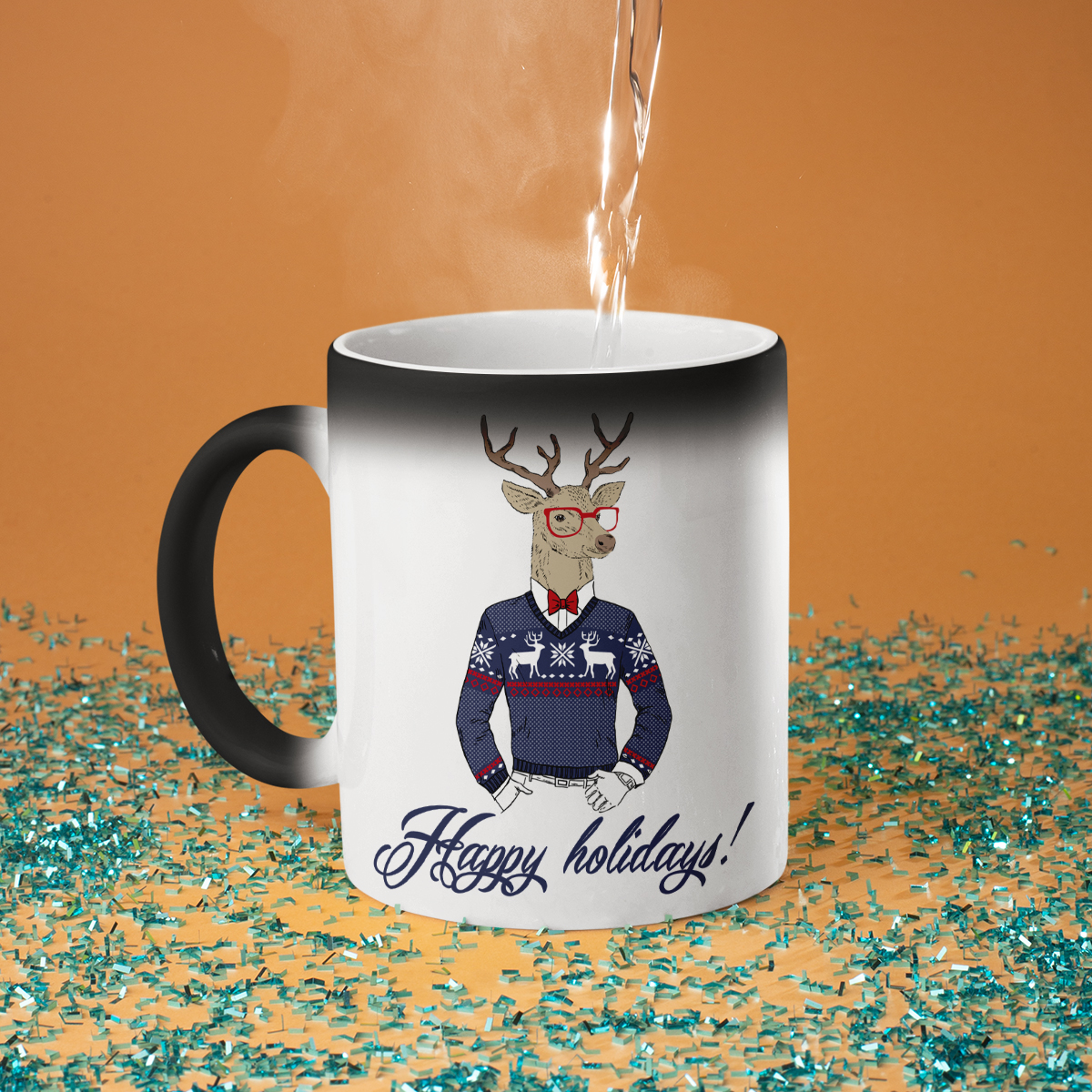 - Magic mug – not called magic for nothing! At first glance, it's a simple black mug, but when hot water is poured in, it turns white, and the hidden print is revealed. It's a real surprise and a little miracle for every day!