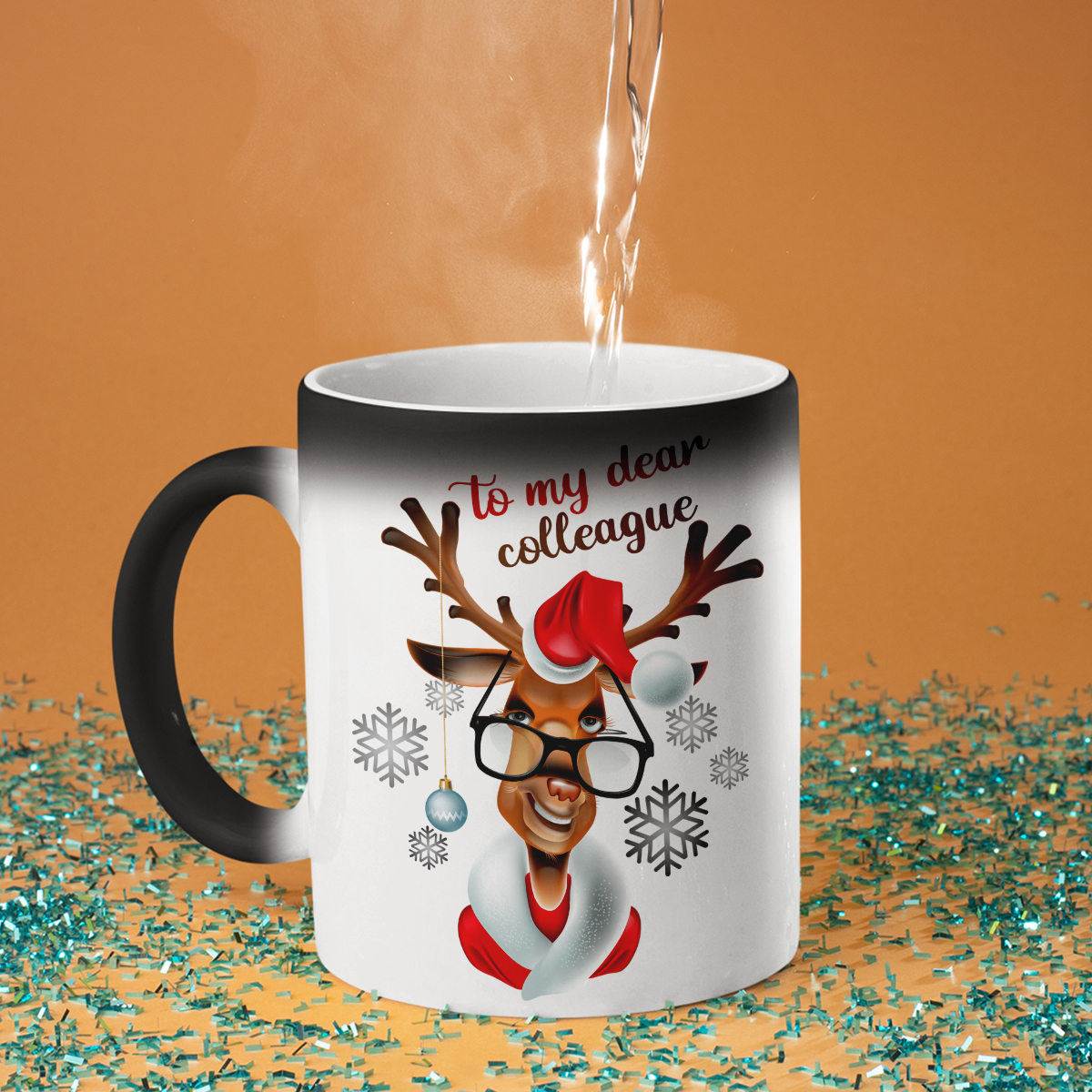 - Magic mug – not called magic for nothing! At first glance, it's a simple black mug, but when hot water is poured in, it turns white, and the hidden print is revealed. It's a real surprise and a little miracle for every day!