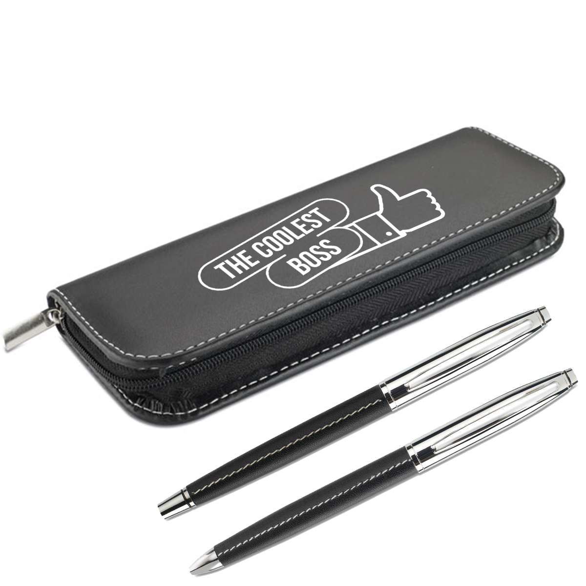 This set includes two sleek pens presented in a special eco-leather case with the words "The Coolest Boss."