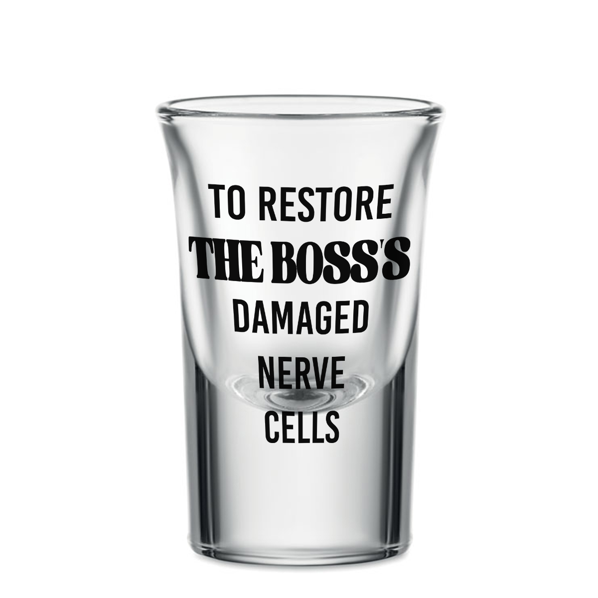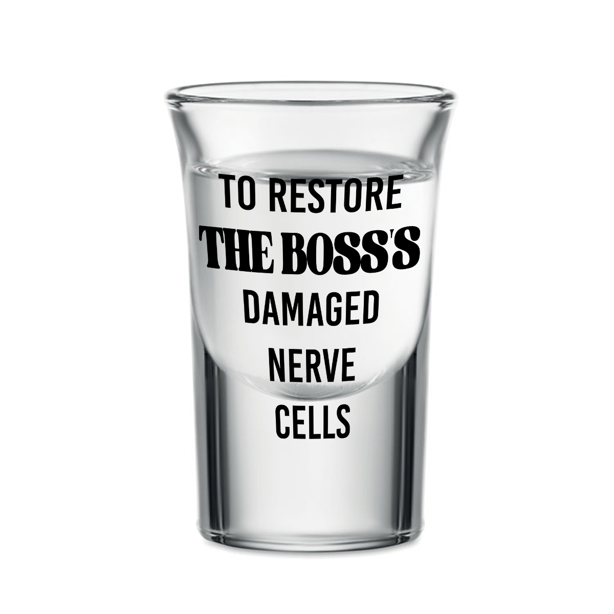 Shot glass "Boss", 30 ml - labelled "TO RESTORE THE BOSS'S DAMAGED NERVE CELLS".