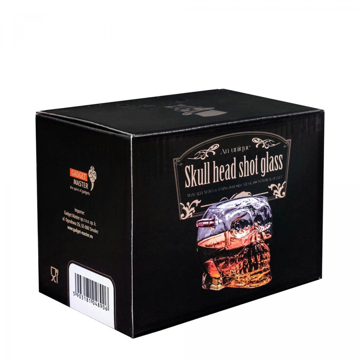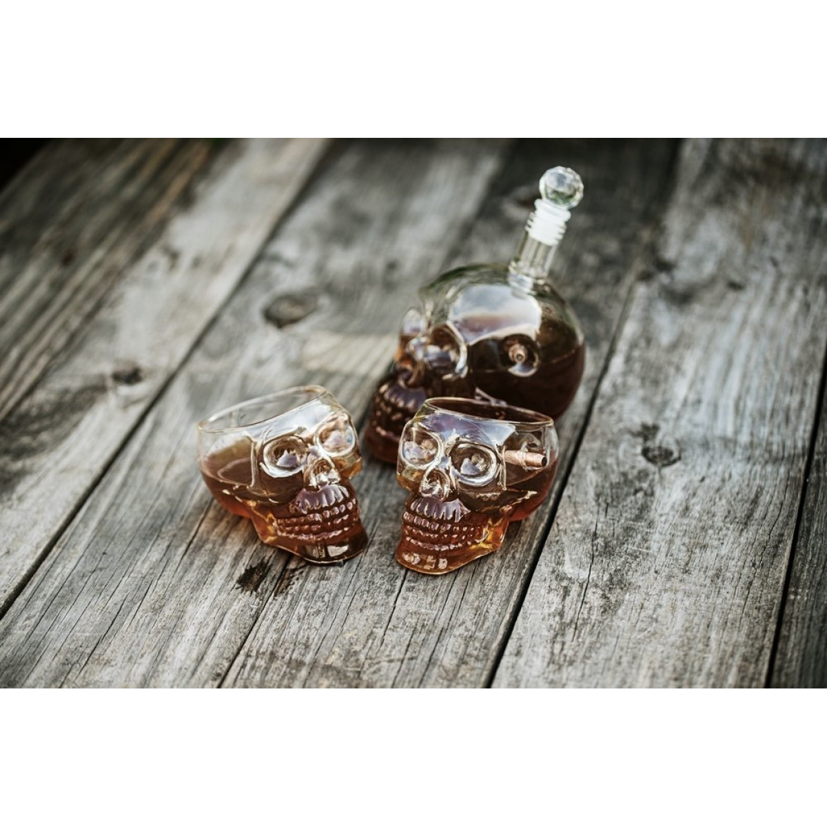 Skull-shaped goblet with bullet