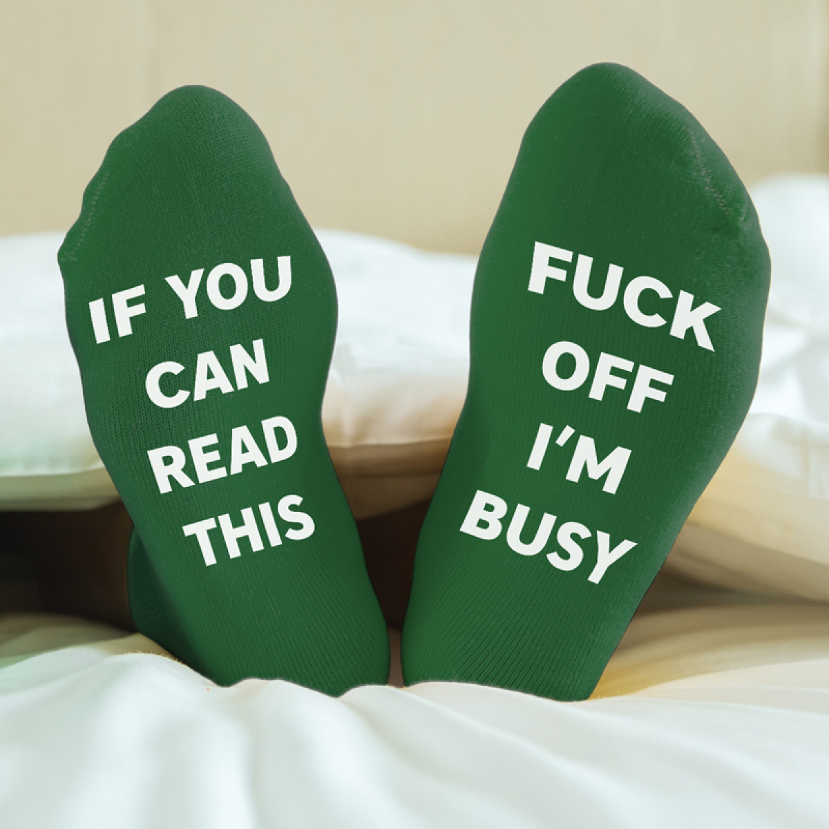 Socks with print on soles "Fuck off, I'm busy"