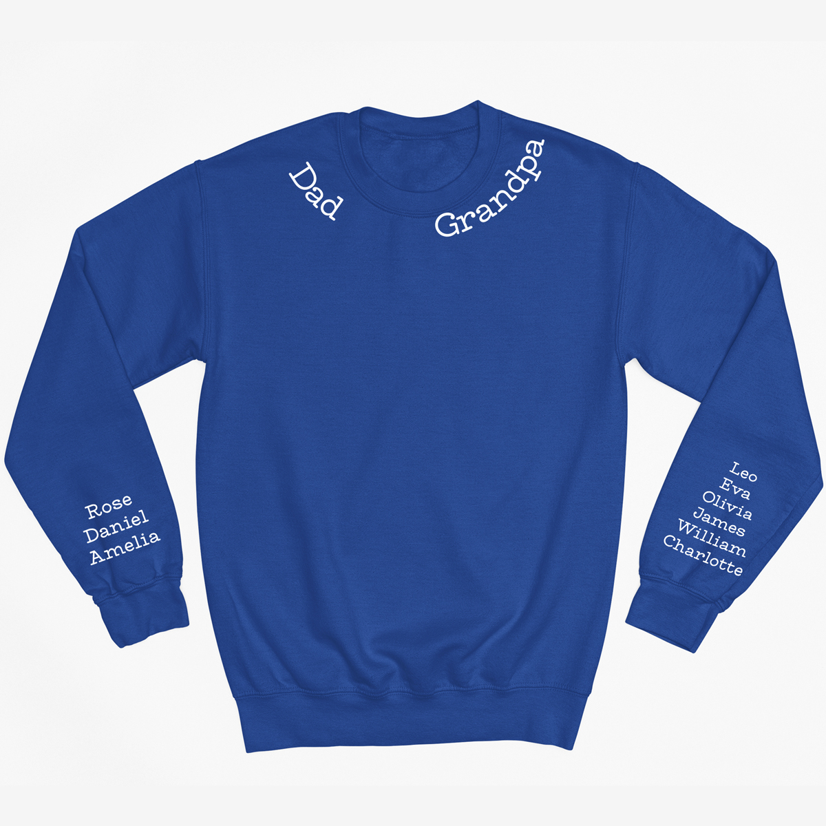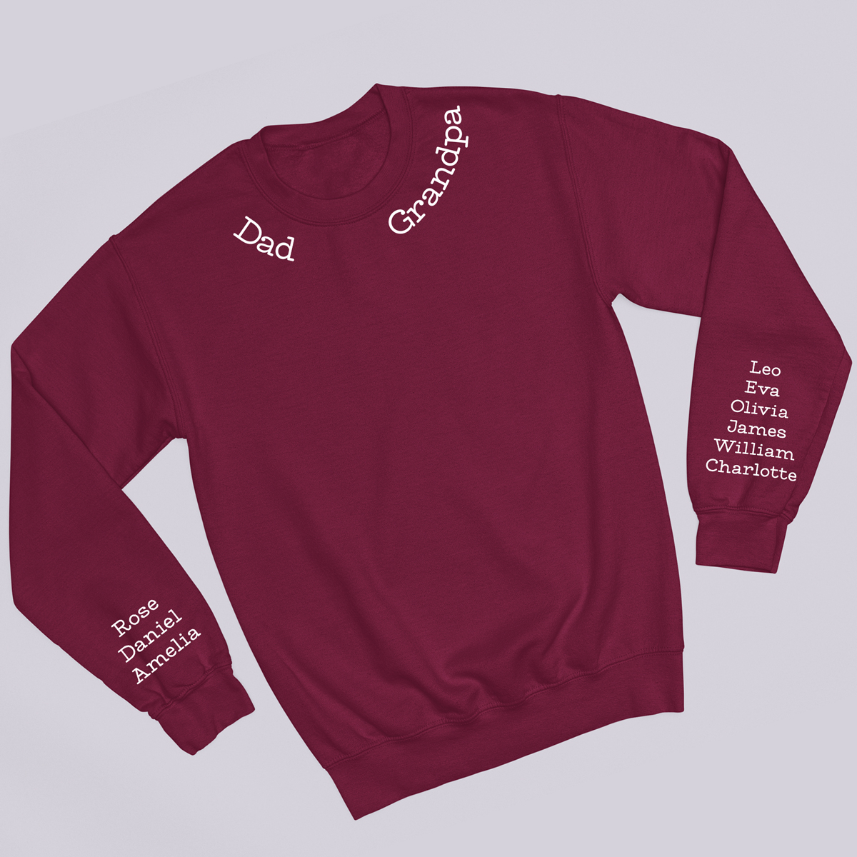 Sweatshirt "Dad - Grandpa" with children's names on the sleeves (without hood)