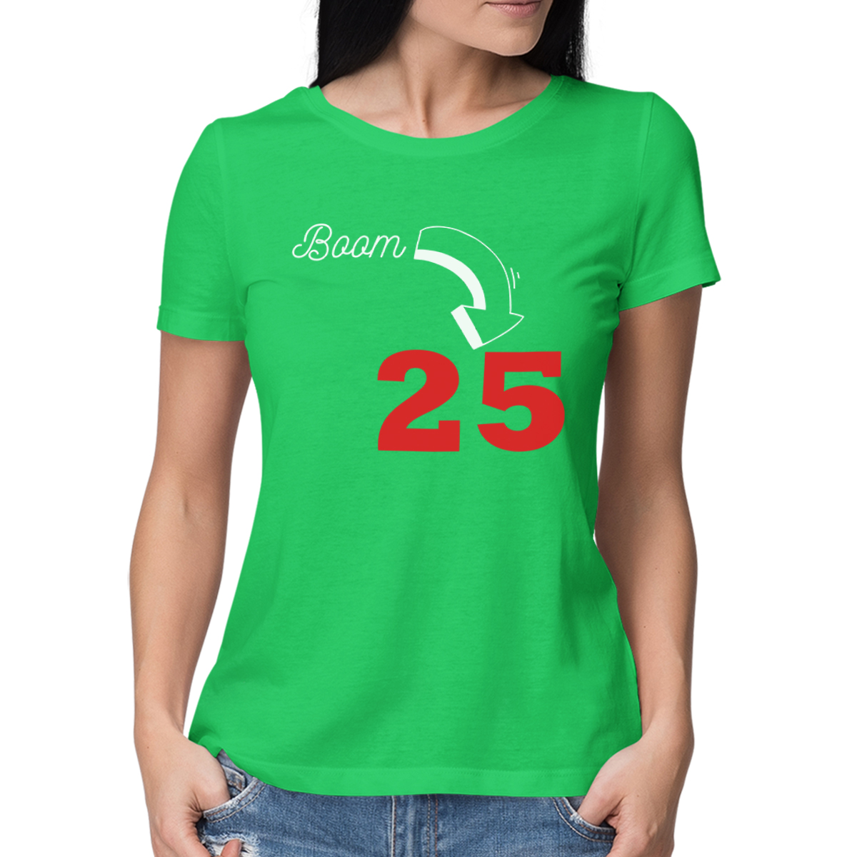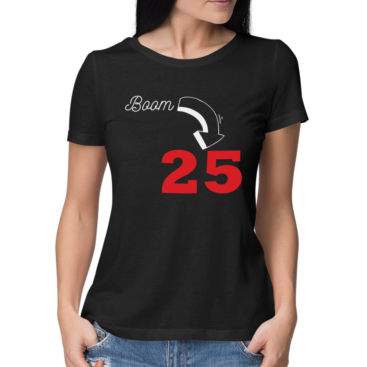 Women's T-shirt "Boom, it's birthday" with your chosen year