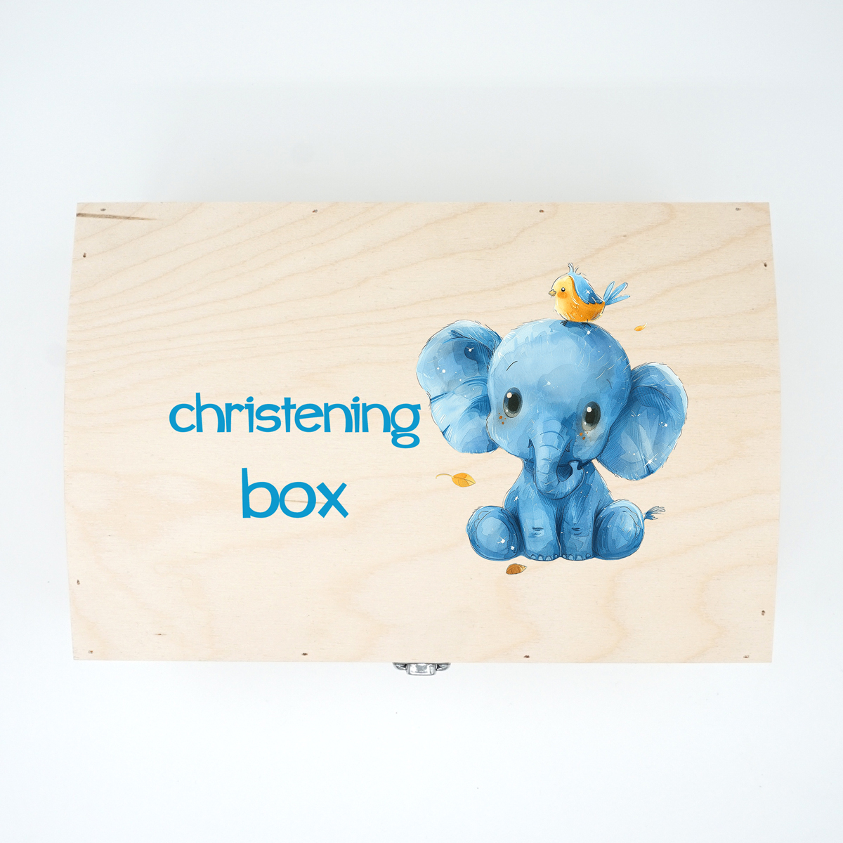 Wooden Keepsake Box "Christening Box with Little Elephant"