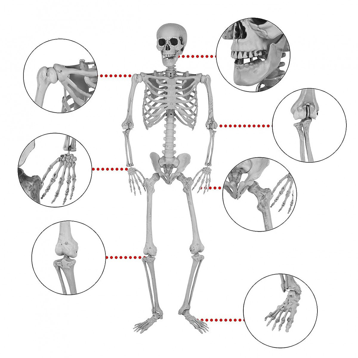 - A full human skeleton, 165cm tall, with movable joints, designed to imitate a real human skeleton. Let this skeleton stand out from the rest and make your party unforgettable.