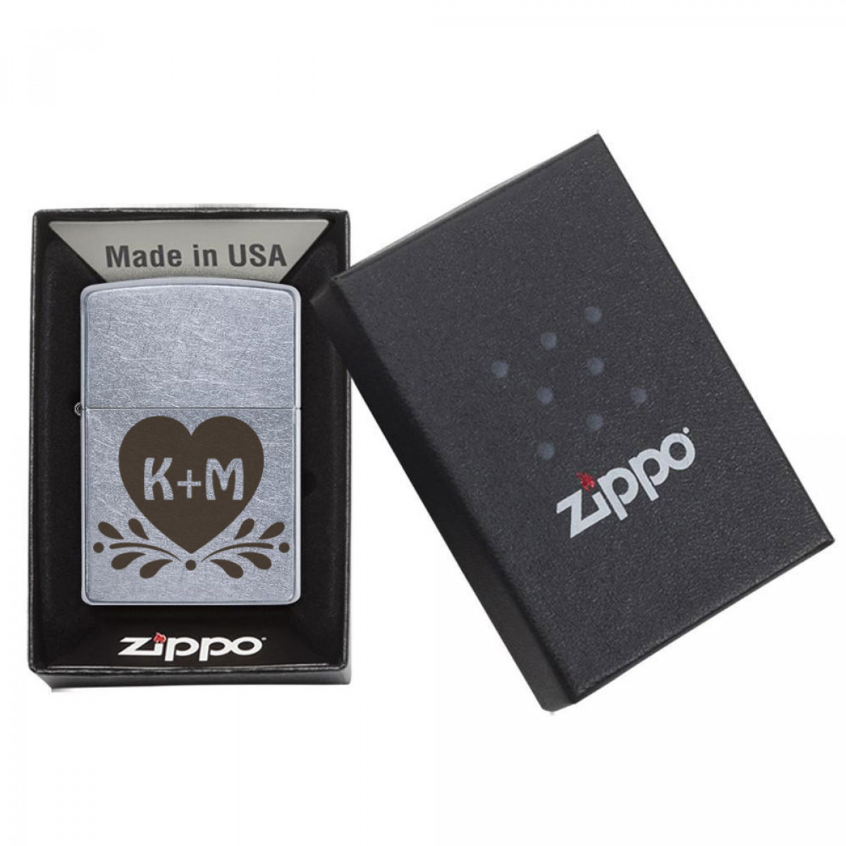 A Zippo lighter engraved with a heart and the initials of your and your loved one's names is a practical and long-lasting gift.